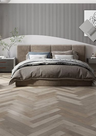 Lantai SPC tahan lama dengan desain modern.